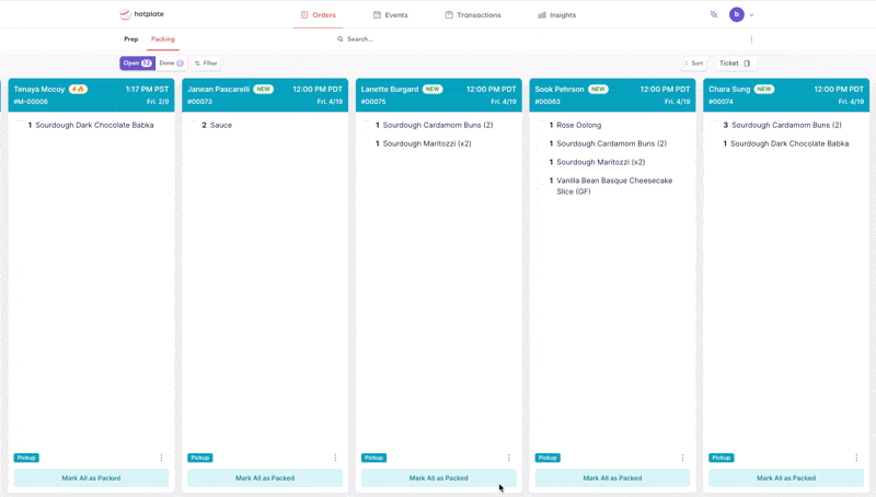 - Locate the order ticket in the Orders tab