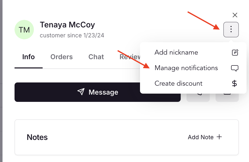 Anyone who has ever ordered from you will be in this list, and those subscribed to your SMS notifications will have a green checkmark under Subscribed. If a customer is only subscribed to your SMS list and hasn’t placed an order yet, then you won’t see any other customer details besides their phone number.