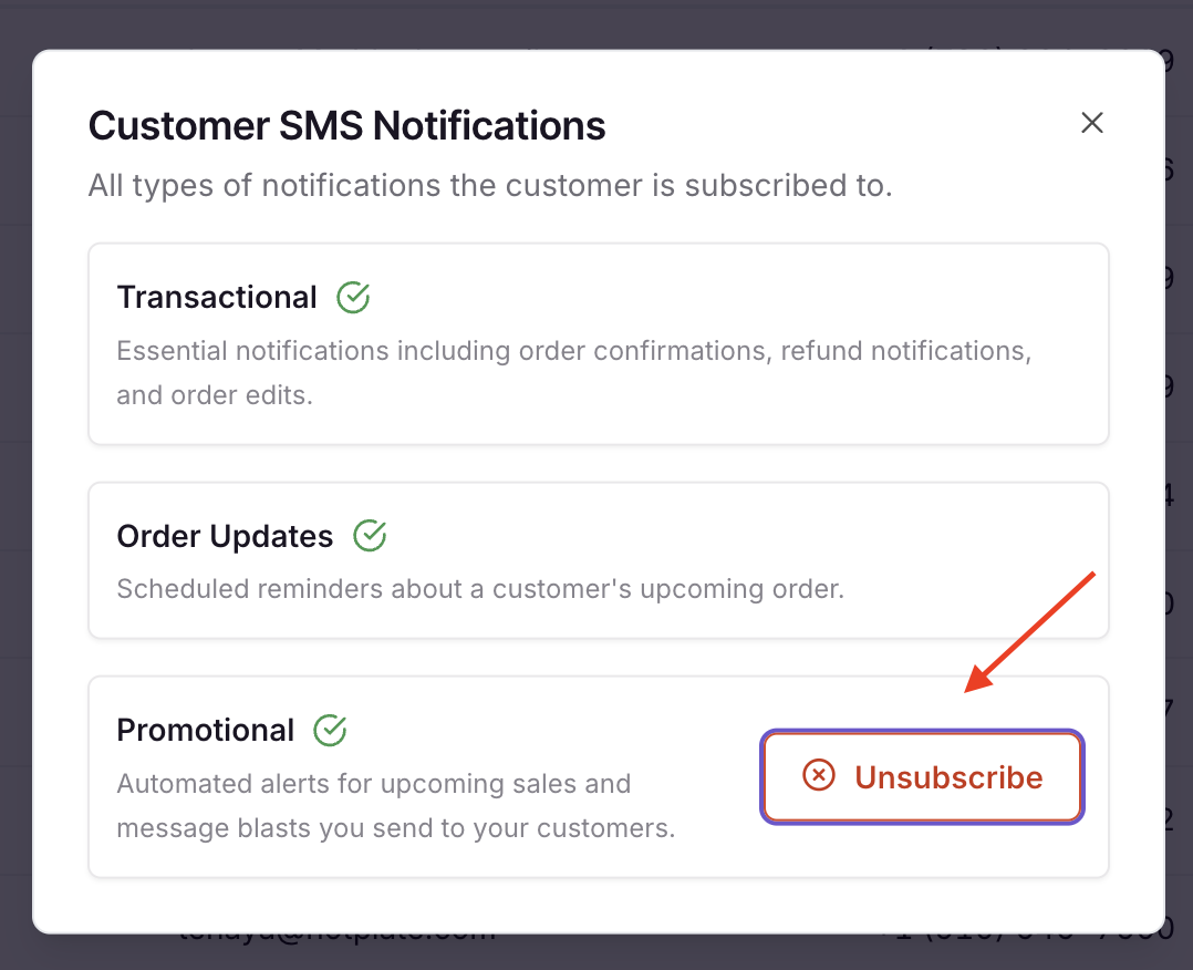 Every text that Hotplate sends includes instructions on how to unsubscribe from your list and customers can do so at any time. Here is an example of what they’ll see: