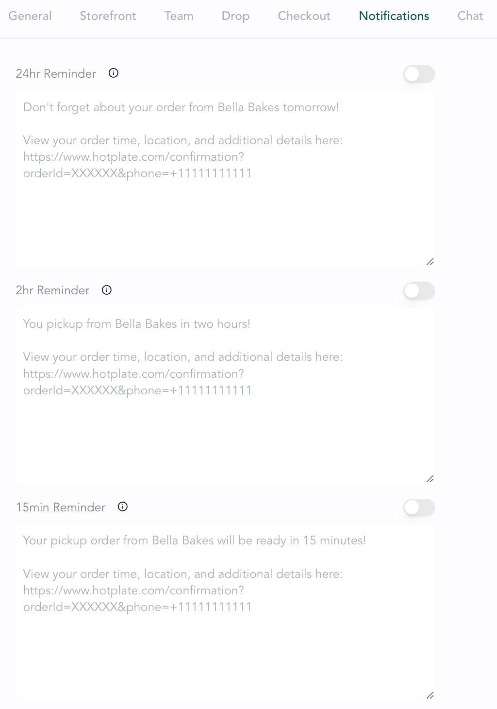 You may also want to customize the automated pickup reminder texts to include specific instructions. Keep in mind, though, these texts arenโt customizable per location, they go out to all customers, so you should keep them generic if you have multiple pickup locations.
