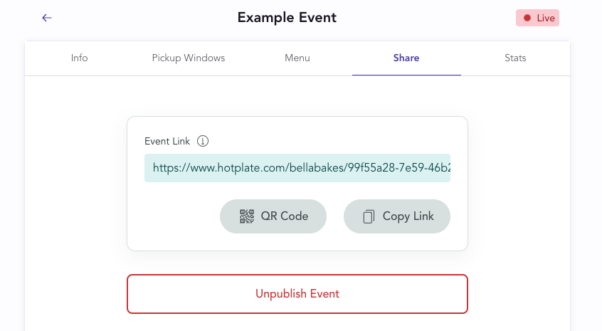 Once you've reviewed the event, you can go back into your Hotplate portal make any changes. Be sure to Unpublish your Event while you're making changes, and to turn off the setting that makes the Event private. When you're ready to go live to customers, just publish your event and they'll be notified of your drop!