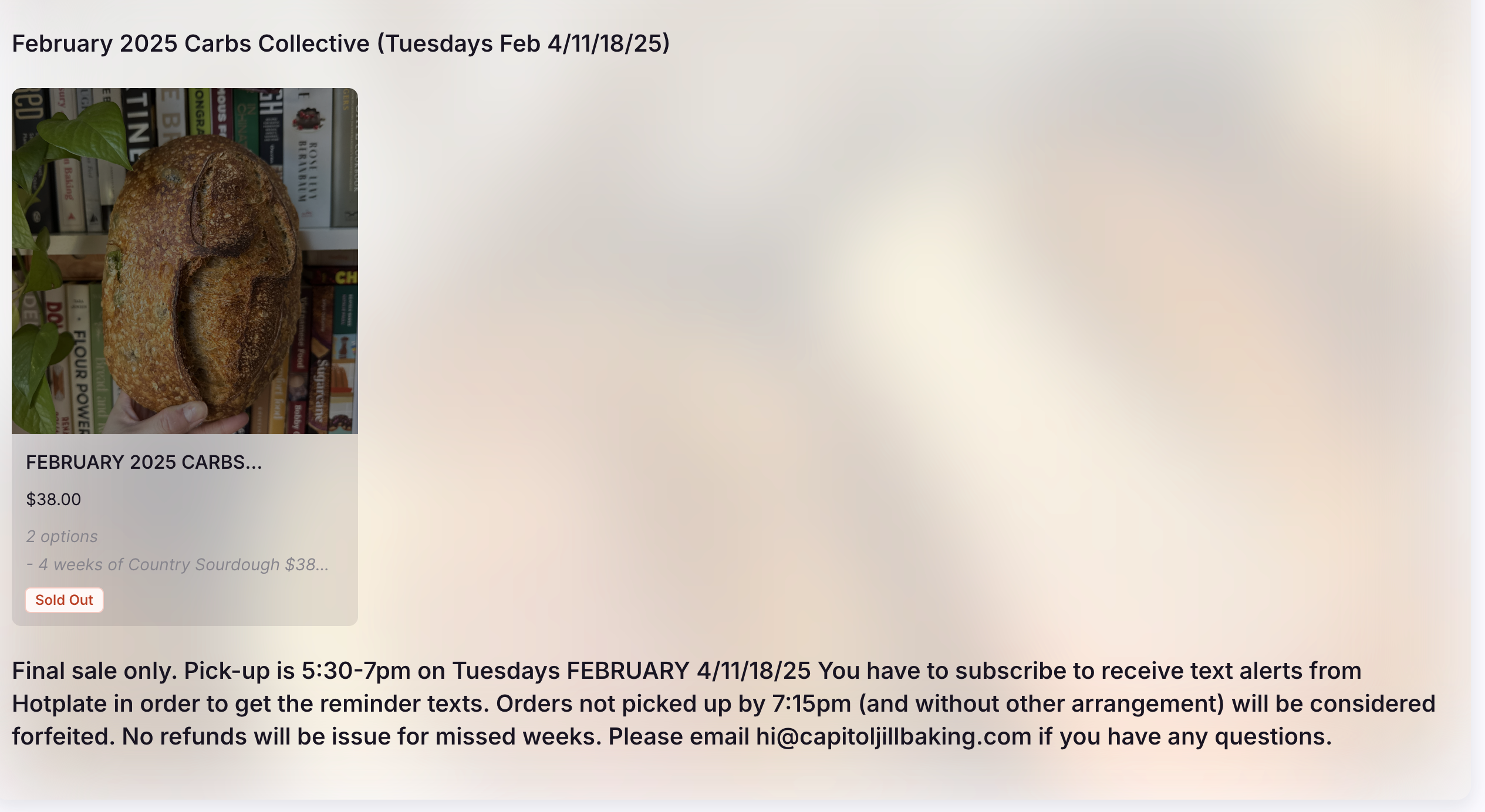 Use the description to explain what the pick up schedule will be. We love this one from Laune Bread :